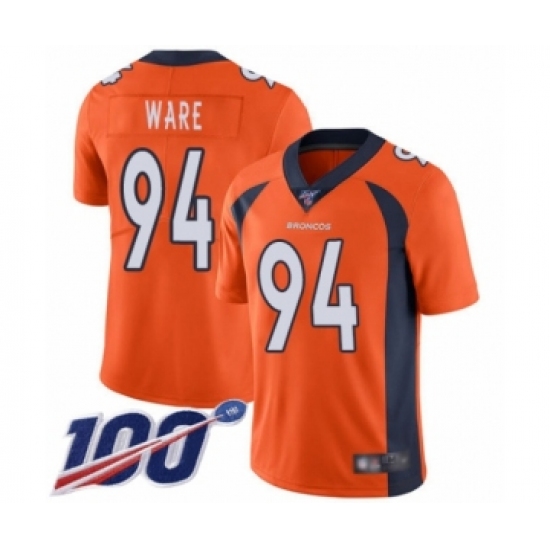 Men's Denver Broncos #94 DeMarcus Ware Orange Team Color Vapor Untouchable Limited Player 100th Season Football Jersey