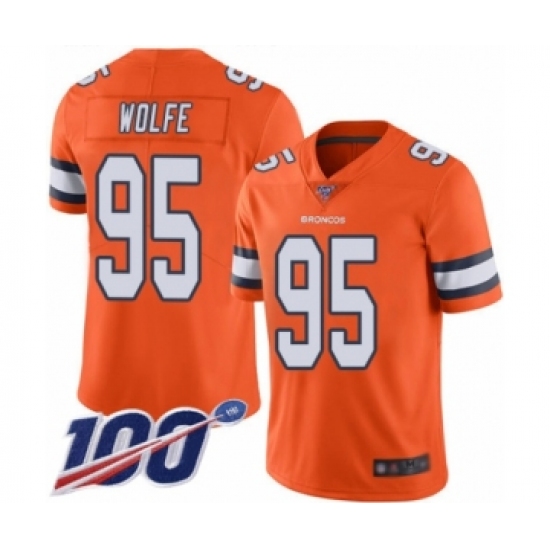 >Men's Denver Broncos #95 Derek Wolfe Limited Orange Rush Vapor Untouchable 100th Season Football Jersey