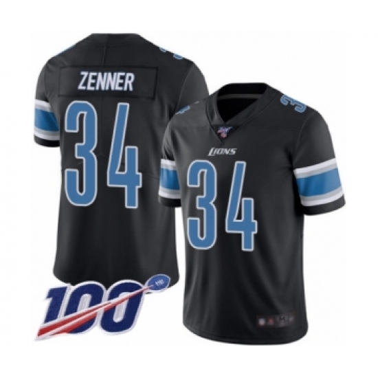 >Men's Detroit Lions #34 Zach Zenner Limited Black Rush Vapor Untouchable 100th Season Football Jersey