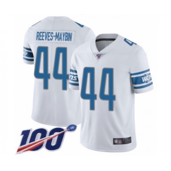 >Men's Detroit Lions #44 Jalen Reeves-Maybin White Vapor Untouchable Limited Player 100th Season Football Jersey