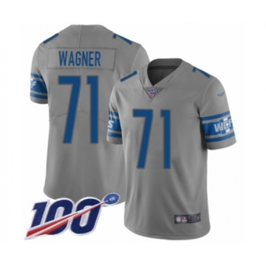 >Men's Detroit Lions #71 Ricky Wagner Limited Gray Inverted Legend 100th Season Football Jersey