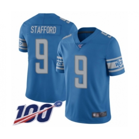 >Men's Detroit Lions #9 Matthew Stafford Blue Team Color Vapor Untouchable Limited Player 100th Season Football Jersey