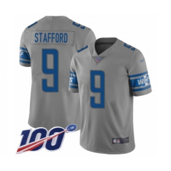 Men's Detroit Lions #9 Matthew Stafford Limited Gray Inverted Legend 100th Season Football Jersey