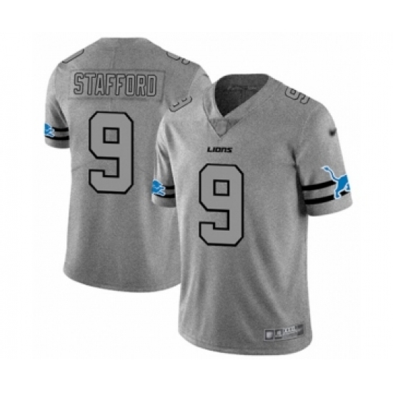 Men's Detroit Lions #9 Matthew Stafford Limited Gray Team Logo Gridiron Football Jersey