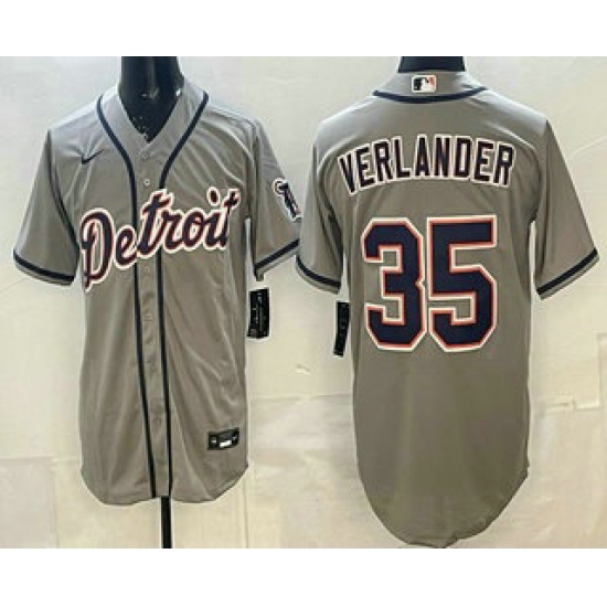 Men's Detroit Tigers #35 Justin Verlander Grey Cool Base Jersey