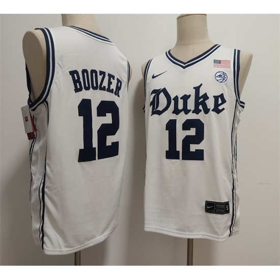 Men's Duke Blue Devils #12 Cameron Boozer White Stitched Basketball Jersey