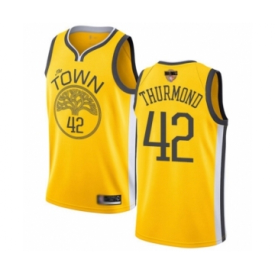 Men's Nike Golden State Warriors #42 Nate Thurmond Authentic Gold 2018 NBA Finals Bound NBA Jersey - City Edition