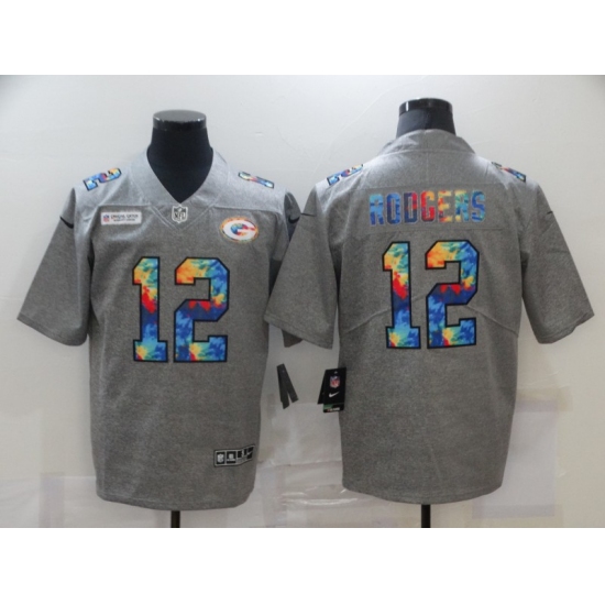 Men's Green Bay Packers #12 Aaron Rodgers Gray Rainbow Version Nike Limited Jersey