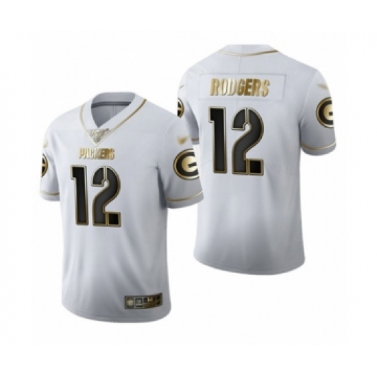 Men's Green Bay Packers #12 Aaron Rodgers Limited White Golden Edition Limited Football Jersey