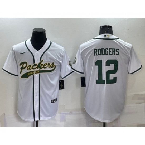 Men's Green Bay Packers #12 Aaron Rodgers White Stitched MLB Cool Base Nike Baseball Jersey