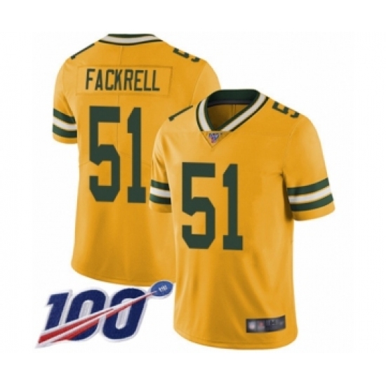 >Men's Green Bay Packers #51 Kyler Fackrell Limited Gold Rush Vapor Untouchable 100th Season Football Jersey