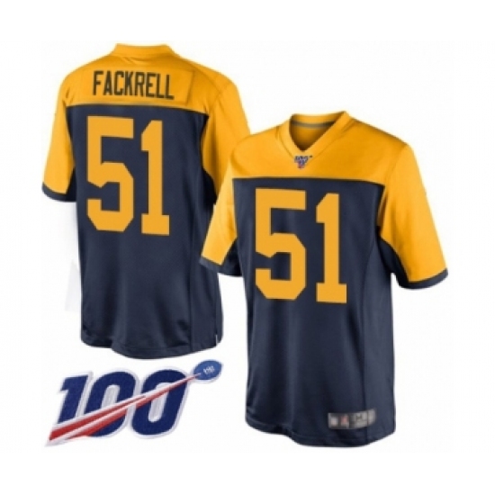 Men's Green Bay Packers #51 Kyler Fackrell Limited Navy Blue Alternate 100th Season Football Jersey