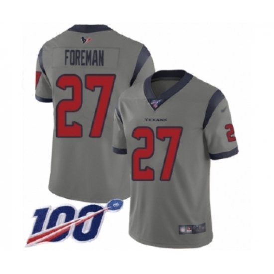 >Men's Houston Texans #27 D'Onta Foreman Limited Gray Inverted Legend 100th Season Football Jersey