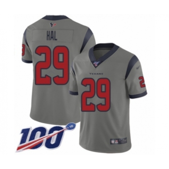 >Men's Houston Texans #29 Andre Hal Limited Gray Inverted Legend 100th Season Football Jersey