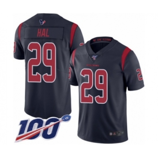 Men's Houston Texans #29 Andre Hal Limited Navy Blue Rush Vapor Untouchable 100th Season Football Jersey