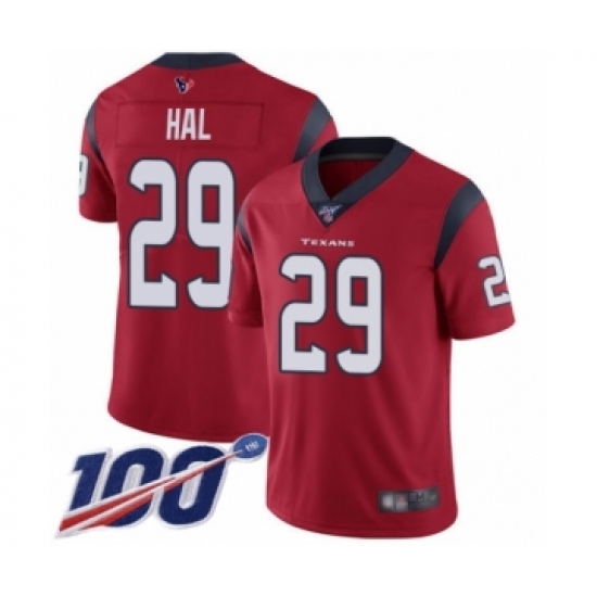 Men's Houston Texans #29 Andre Hal Red Alternate Vapor Untouchable Limited Player 100th Season Football Jersey