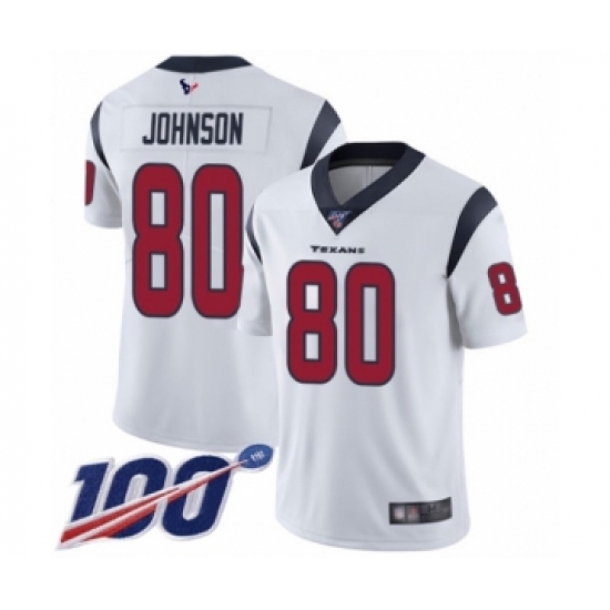>Men's Houston Texans #80 Andre Johnson White Vapor Untouchable Limited Player 100th Season Football Jersey