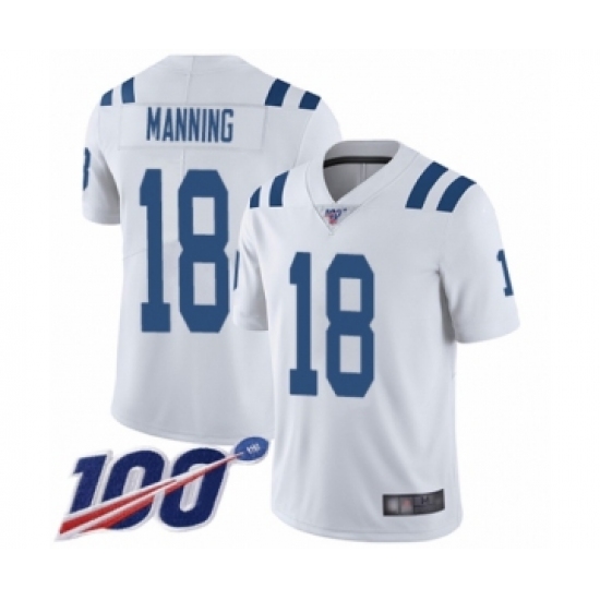 Men's Indianapolis Colts #18 Peyton Manning White Vapor Untouchable Limited Player 100th Season Football Jersey