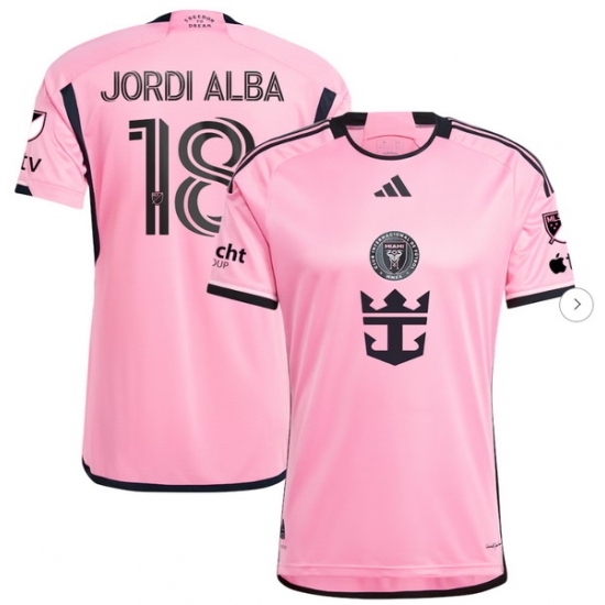 Men's Inter Miami CF #18 Jordi Alba 2025 Black Away Soccer Jersey Suit