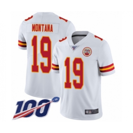 Men's Kansas City Chiefs #19 Joe Montana White Vapor Untouchable Limited Player 100th Season Football Jersey
