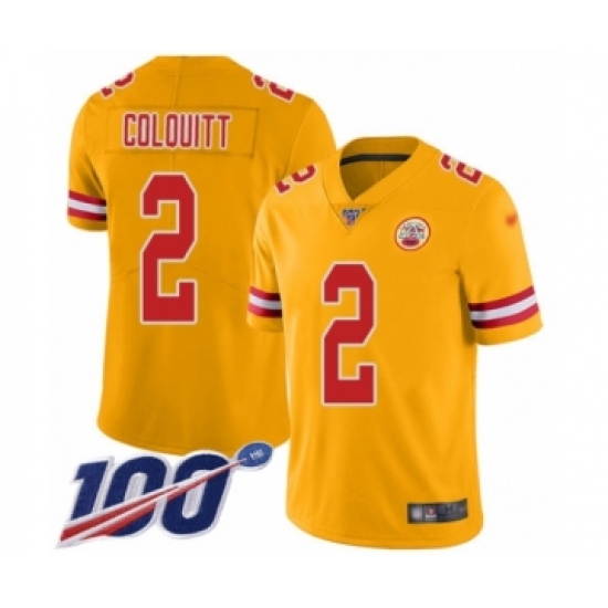 Men's Kansas City Chiefs #2 Dustin Colquitt Limited Gold Inverted Legend 100th Season Football Jersey