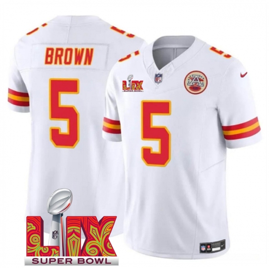 Men's Kansas City Chiefs #5 Hollywood Brown White 2025 Super Bowl LIX F.U.S.E. Vapor Limited Stitched Football Jersey
