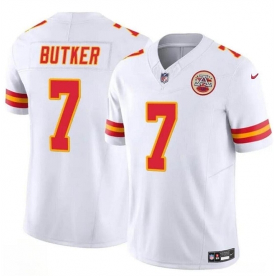 >Men’s Kansas City Chiefs #7 Harrison Butker White 2024 F.U.S.E Vapor Untouchable Limited Stitched Football Jersey
