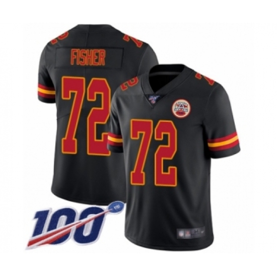 >Men's Kansas City Chiefs #72 Eric Fisher Limited Black Rush Vapor Untouchable 100th Season Football Jersey