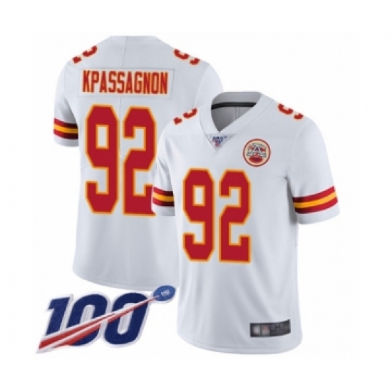 >Men's Kansas City Chiefs #92 Tanoh Kpassagnon White Vapor Untouchable Limited Player 100th Season Football Jersey