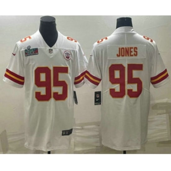 Men's Kansas City Chiefs #95 Chris Jones White Super Bowl LVII Patch Vapor Untouchable Limited Stitched Jersey
