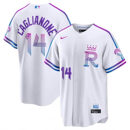 >Men's Kansas City Royals #14 Jac Caglianone White 2026 City Connect Stadium Stitched Baseball Jersey