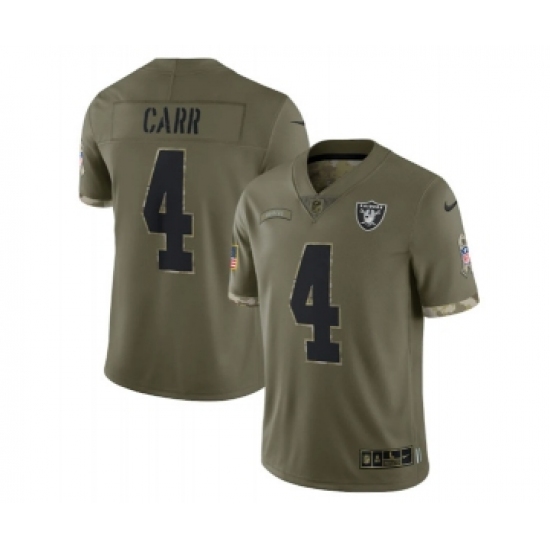 Men's Las Vegas Raiders #4 Derek Carr 2022 Olive Salute To Service Limited Stitched Jersey