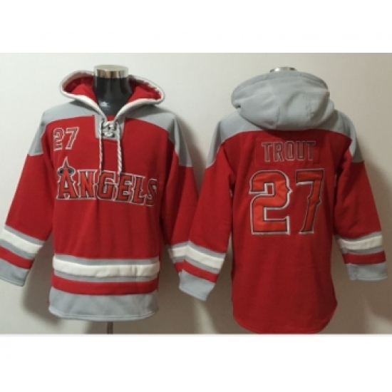Men's Los Angeles Angels #27 Mike Trout Red Ageless Must-Have Lace-Up Pullover Hoodie