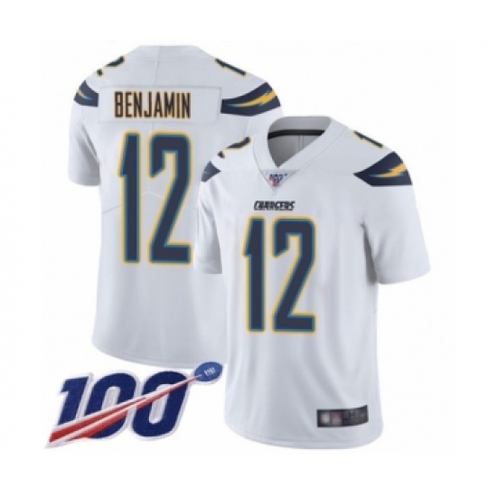 >Men's Los Angeles Chargers #12 Travis Benjamin White Vapor Untouchable Limited Player 100th Season Football Jersey