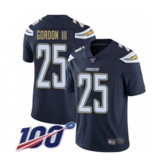 >Men's Los Angeles Chargers #25 Melvin Gordon Navy Blue Team Color Vapor Untouchable Limited Player 100th Season Football Jersey