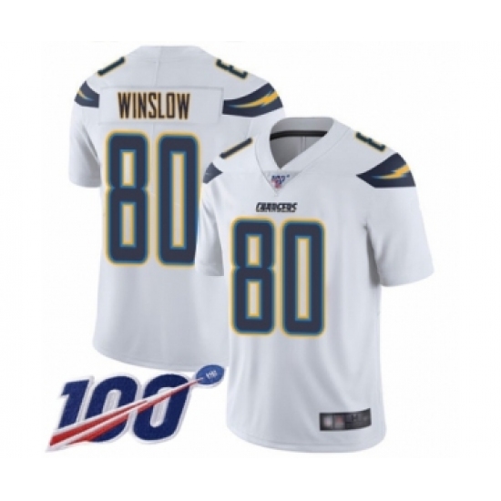 Men's Los Angeles Chargers #80 Kellen Winslow White Vapor Untouchable Limited Player 100th Season Football Jersey