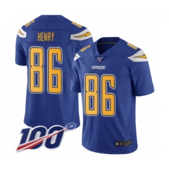>Men's Los Angeles Chargers #86 Hunter Henry Limited Electric Blue Rush Vapor Untouchable 100th Season Football Jersey
