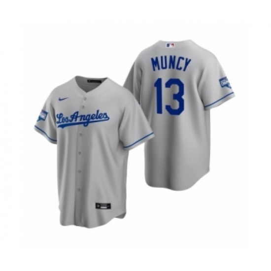 Men's Los Angeles Dodgers #13 Max Muncy Gray 2020 World Series Champions Road Replica Jersey