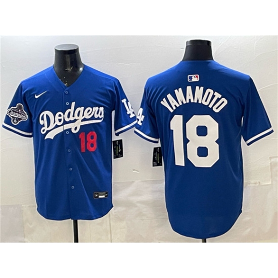 Men's Los Angeles Dodgers #18 Yoshinobu Yamamoto Royal 2025 World Series Champions Limited Stitched Baseball Jersey