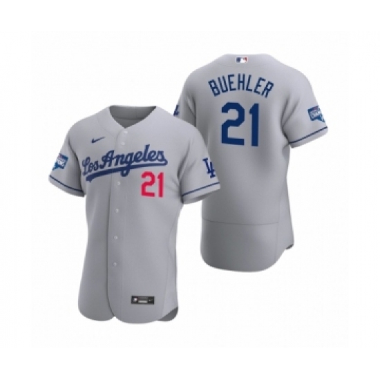 Men's Los Angeles Dodgers #21 Walker Buehler Gray 2020 World Series Champions Road Authentic Jersey