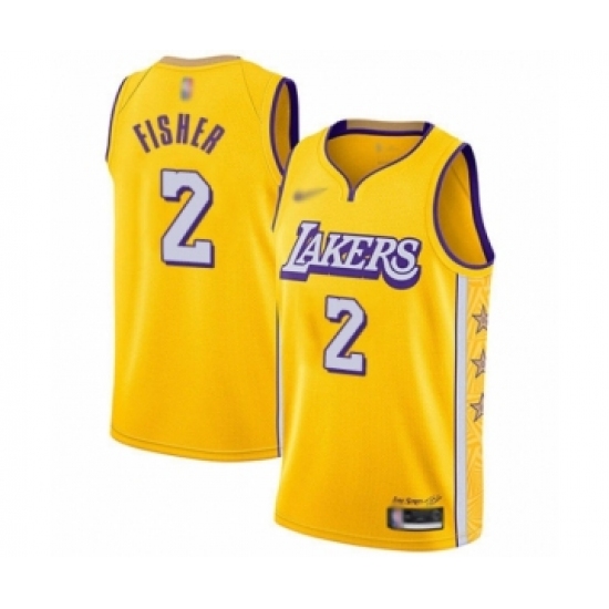 >Men's Los Angeles Lakers #2 Derek Fisher Swingman Gold 2019-20 City Edition Basketball Jersey