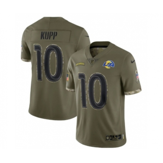 >Men's Los Angeles Rams #10 Cooper Kupp 2022 Olive Salute To Service Limited Stitched Jersey