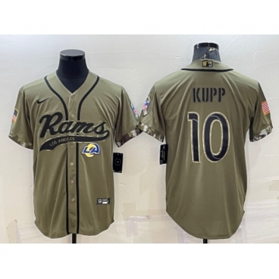 >Men's Los Angeles Rams #10 Cooper Kupp Olive 2022 Salute to Service Cool Base Stitched Baseball Jersey