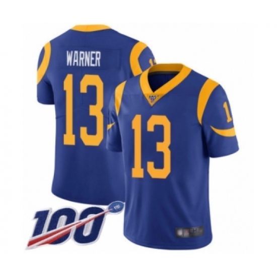 Men's Los Angeles Rams #13 Kurt Warner Royal Blue Alternate Vapor Untouchable Limited Player 100th Season Football Jersey