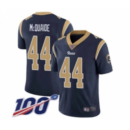 Men's Los Angeles Rams #44 Jacob McQuaide Navy Blue Team Color Vapor Untouchable Limited Player 100th Season Football Jersey