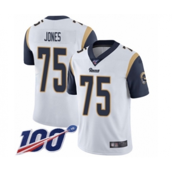 Men's Los Angeles Rams #75 Deacon Jones White Vapor Untouchable Limited Player 100th Season Football Jersey