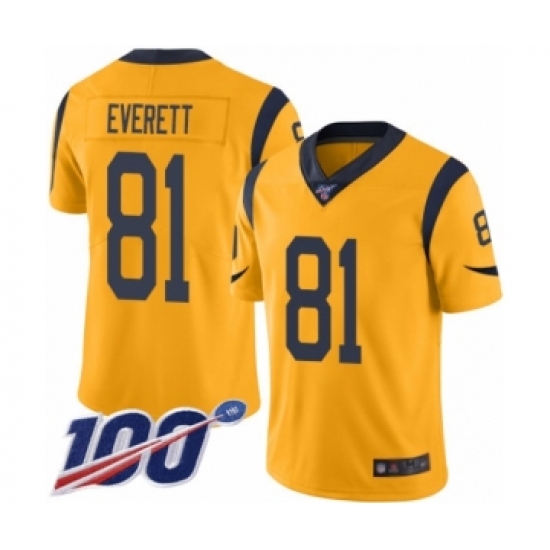 Men's Los Angeles Rams #81 Gerald Everett Limited Gold Rush Vapor Untouchable 100th Season Football Jersey