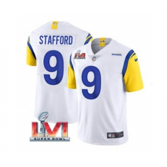 Men's Los Angeles Rams #9 Matthew Stafford White 2022 Super Bowl LVI Vapor Limited Stitched Jersey