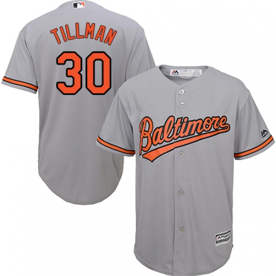 Home>MLB>Baltimore Orioles>Chris Tillman>Men's Majestic Baltimore Orioles #30 Chris Tillman Replica Grey Road Cool Base MLB Jersey