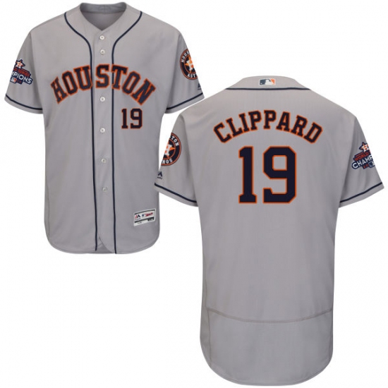 Home>MLB>Houston Astros>Tyler Clippard>Men's Majestic Houston Astros #19 Tyler Clippard Authentic Grey Road 2017 World Series Champions Flex Base MLB Jersey